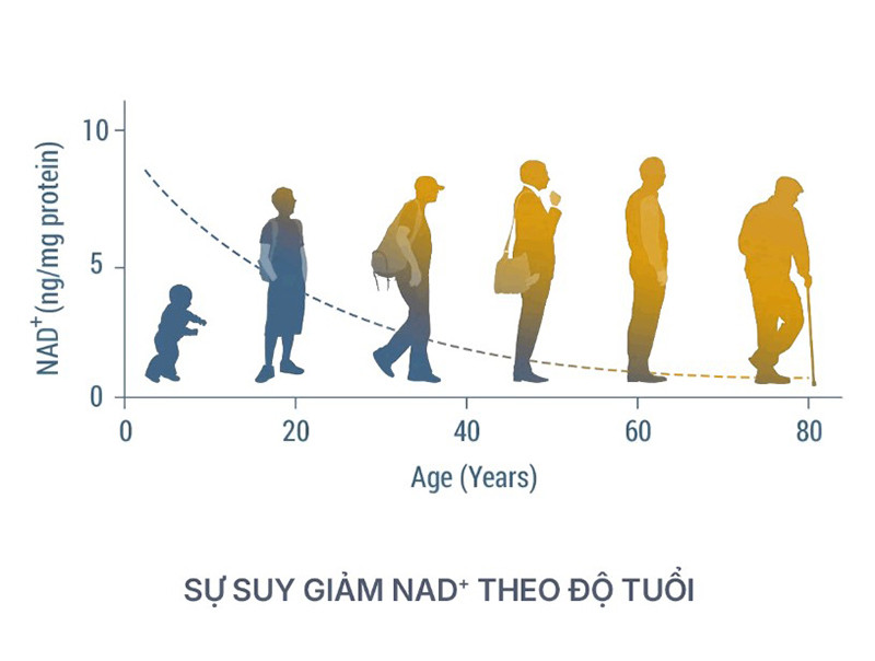 Theo quá trình lão hóa sinh học, hiệu suất hoạt động của ty thể (“nhà máy năng lượng” của tế bào) giảm dần theo thời gian. Cùng với đó là sự suy giảm NAD⁺ nội sinh, một coenzyme thiết yếu cho quá trình tạo năng lượng và sửa chữa tế bào.